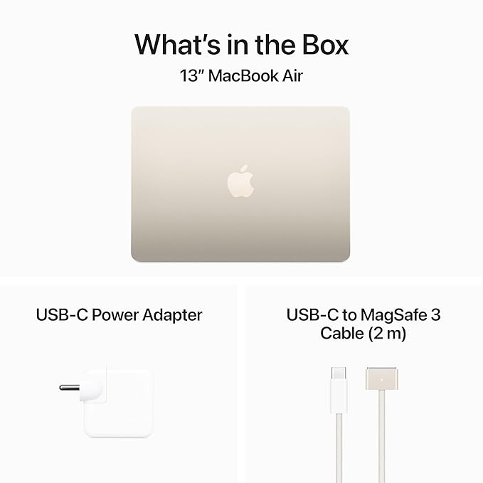 13.6? Liquid Retina laptop powered by Apple M3 chip, with 16 GB unified memory, 512 GB SSD, backlit keyboard, 1080p FaceTime HD camera and starlight aluminium finish.