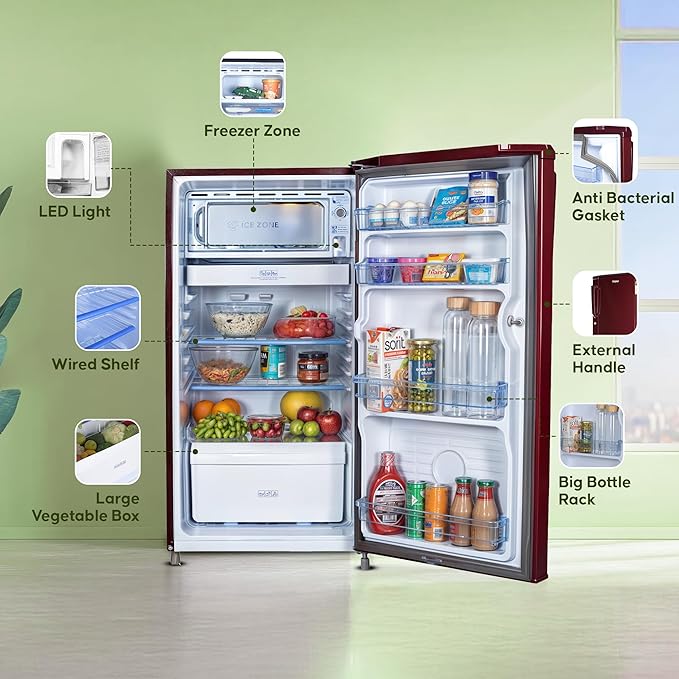 Direct Cool Refrigerator: Stylish Single Door Refrigerator with Modern Red Mono finish. Enjoy powerful cooling that can last longer