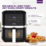 5 L, 1450 W air fryer with 360? high-speed air circulation, up to 90% less oil usage, 8 preset menus, touch-control digital display and auto shut-off.