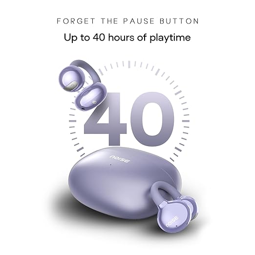 Open-ear wireless earbuds with AirWave? technology, up to 40 h playtime, dual-device pairing, quad-mic ENC, 12 mm drivers, and Bluetooth 5.4 in a sleek chrome-finish design.
