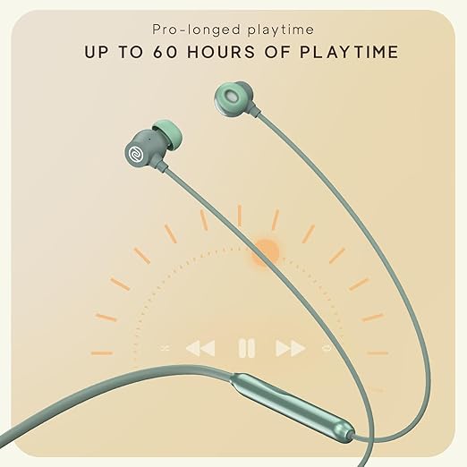 Bluetooth neckband with up to 32dB ANC, 60-hour playtime, 3-mic ENC, and low latency for immersive sound and crystal-clear calls.