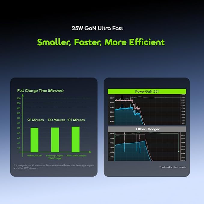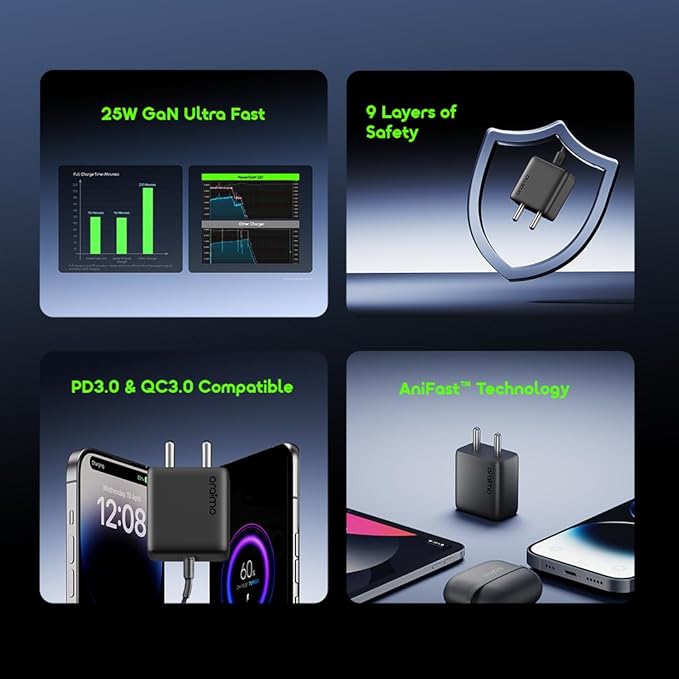 25W Ultra Fast Charging – Powered by advanced GaN technology with PD 3.0 & QC 3.0 support for rapid charging.