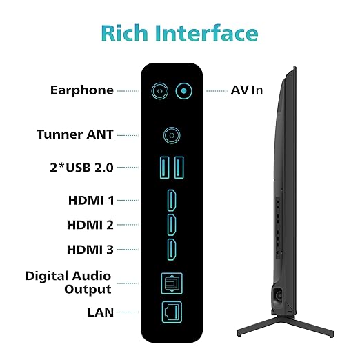 Connectivity: 3 HDMI ports to connect set top box, Blu-ray speakers or a gaming console | 2 USB ports | IR Port to control connected devices like DVD / STB Players, DVP Sattelite Port.
